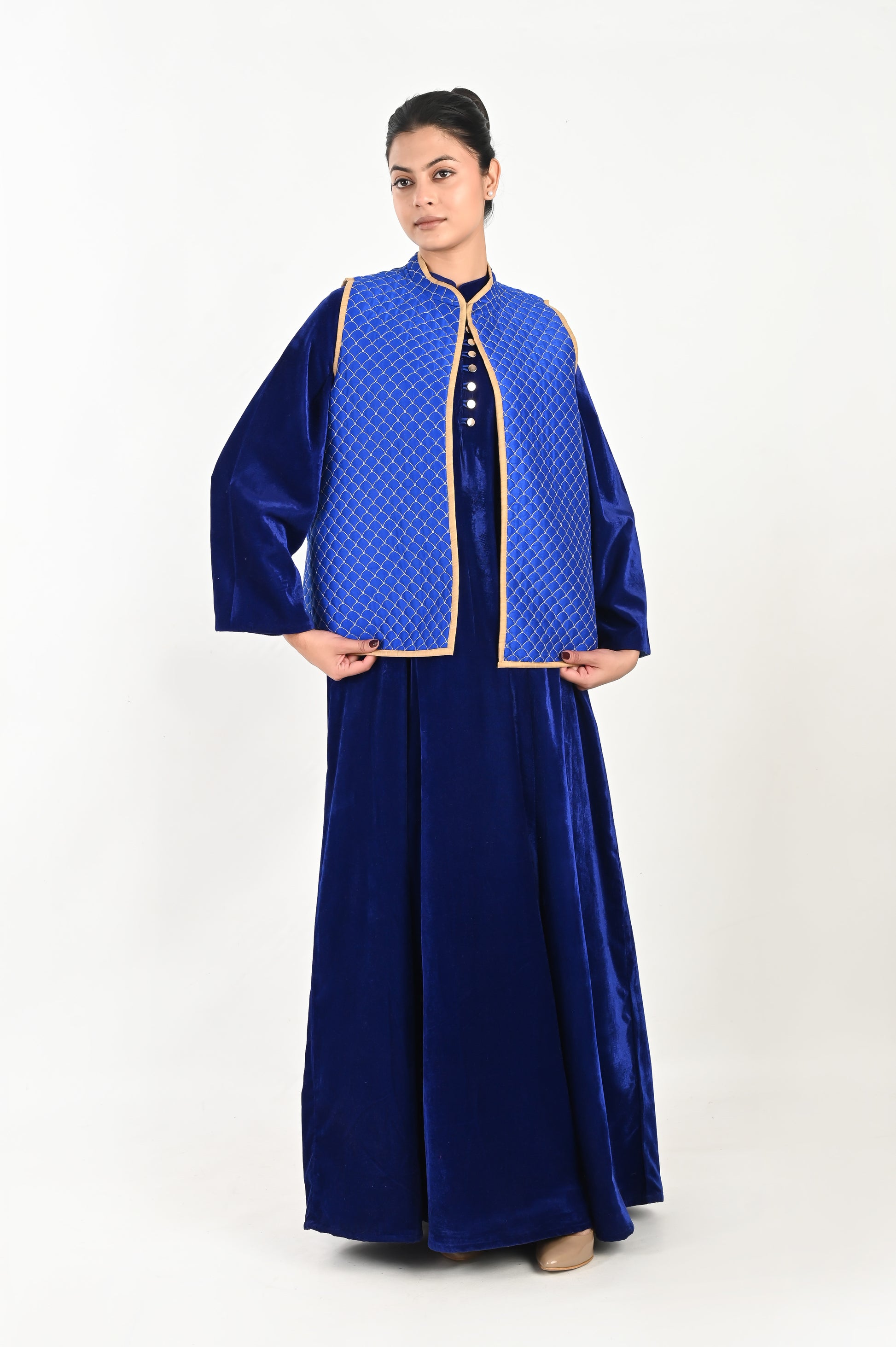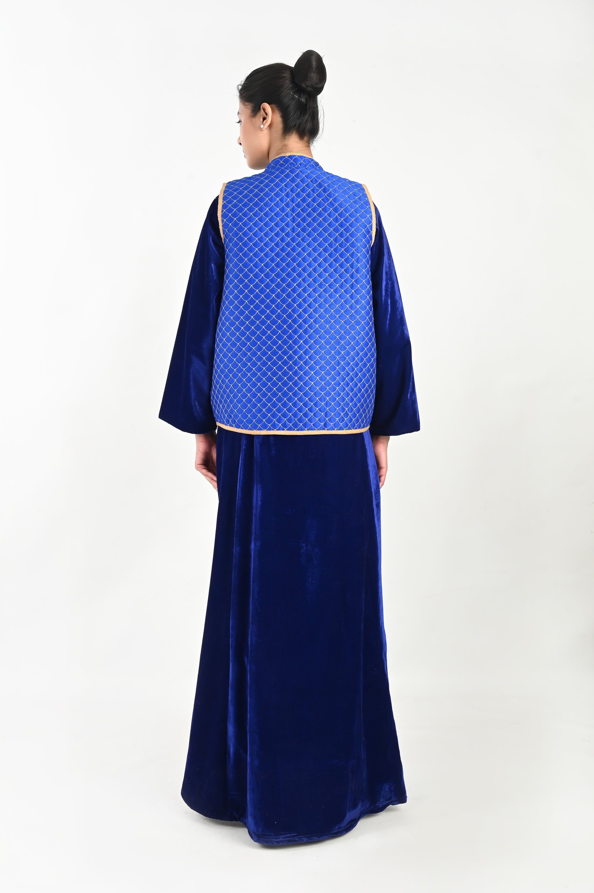 DHARAA BLUE-VELVET KAFTAN AND QUILTED EMBROIDERED JACKET SET-DELIVERY IN 7 TO 10 DAYS (Copy)